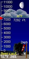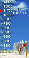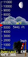 | 1 Rain season: Jan 1st to Dec 31st. 2 Snow season July 1st to June 30th. 3 Snow manually measured usually around 5AM and 5PM. 5 Estimated amount of water needed to replace the water used by plants and evaporation from the past week. (Negative numbers mean amount of water needed, positive numbers mean excess water is present). 6 Air Quality Index is provided by Colorado Department of Public Health & Environment. 9 Solar Index represents either an absolute scale of solar energy (W/m²) using the station’s recorded maximum or a percentage of computed theoretical solar maximum using the station’s location and time of day. These indices differ most when the sun is low on the horizon. The current scale is shown, and will toggle if it or the icon is clicked. 10 Historical average only to day 7 of just the month of February for this station since 2006. 11 Historical average rain this season to day 7 of February for this station since 2006. |