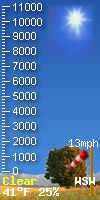 | 1 Rain season: Jan 1st to Dec 31st. 2 Snow season July 1st to June 30th. 3 Snow manually measured usually around 5AM and 5PM. 5 Estimated amount of water needed to replace the water used by plants and evaporation from the past week. (Negative numbers mean amount of water needed, positive numbers mean excess water is present). 6 Air Quality Index is provided by Colorado Department of Public Health & Environment. 9 Solar Index represents either an absolute scale of solar energy (W/m²) using the station’s recorded maximum or a percentage of computed theoretical solar maximum using the station’s location and time of day. These indices differ most when the sun is low on the horizon. The current scale is shown, and will toggle if it or the icon is clicked. 10 Historical average only to day 4 of just the month of April for this station since 2006. 11 Historical average rain this season to day 4 of April for this station since 2006. |