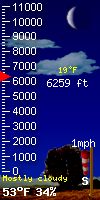 | 1 Rain season: Jan 1st to Dec 31st. 2 Snow season July 1st to June 30th. 3 Snow manually measured usually around 5AM and 5PM. 5 Estimated amount of water needed to replace the water used by plants and evaporation from the past week. (Negative numbers mean amount of water needed, positive numbers mean excess water is present). 6 Air Quality Index is provided by Colorado Department of Public Health & Environment. 9 Solar Index represents either an absolute scale of solar energy (W/m²) using the station’s recorded maximum or a percentage of computed theoretical solar maximum using the station’s location and time of day. These indices differ most when the sun is low on the horizon. The current scale is shown, and will toggle if it or the icon is clicked. 10 Historical average only to day 14 of just the month of November for this station since 2006. 11 Historical average rain this season to day 14 of November for this station since 2006. |