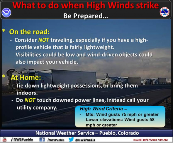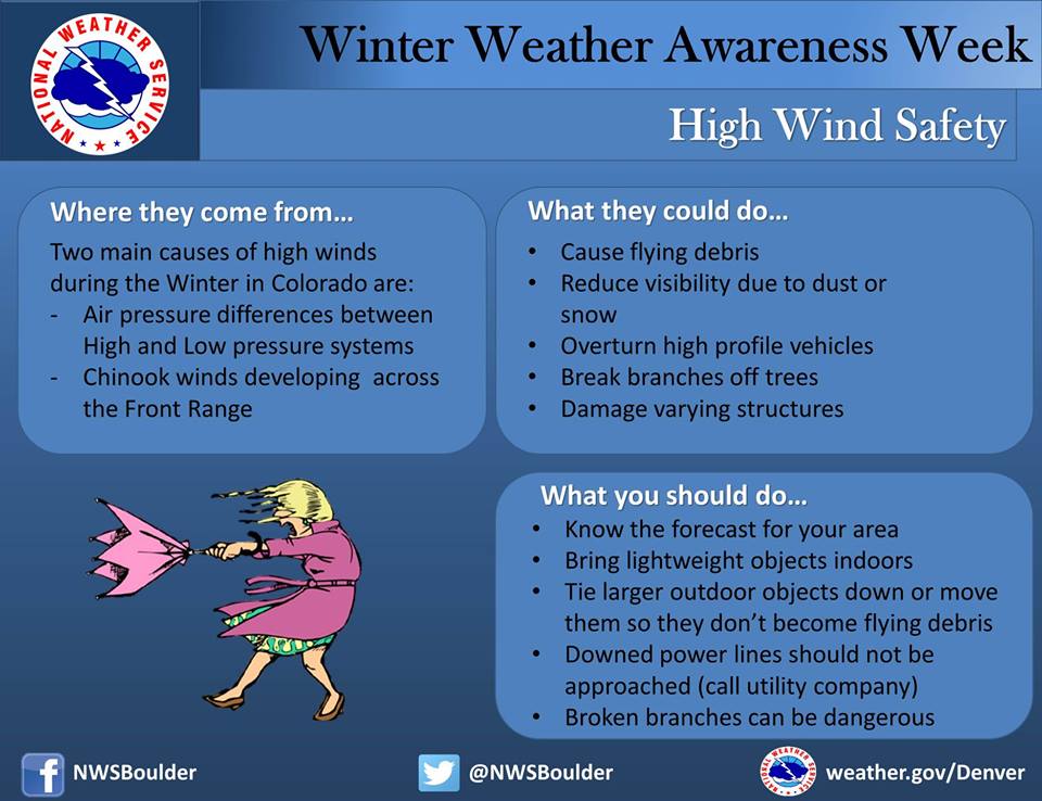As we often experience, high winds in Colorado can cause conditions to deteriorate rapidly.  They present a very real danger to life and property, especially when coupled with other winter conditions like snow.