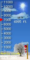 | 1 Rain season: Jan 1st to Dec 31st. 2 Snow season July 1st to June 30th. 3 Snow manually measured usually around 5AM and 5PM. 5 Estimated amount of water needed to replace the water used by plants and evaporation from the past week. (Negative numbers mean amount of water needed, positive numbers mean excess water is present). 6 Air Quality Index is provided by Colorado Department of Public Health & Environment. 9 Solar Index represents either an absolute scale of solar energy (W/m²) using the station’s recorded maximum or a percentage of computed theoretical solar maximum using the station’s location and time of day. These indices differ most when the sun is low on the horizon. The current scale is shown, and will toggle if it or the icon is clicked. 10 Historical average only to day 23 of just the month of December for this station since 2006. 11 Historical average rain this season to day 23 of December for this station since 2006. |