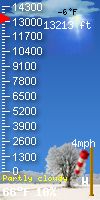 | 1 Rain season: Jan 1st to Dec 31st. 2 Snow season July 1st to June 30th. 3 Snow manually measured usually around 5AM and 5PM. 5 Estimated amount of water needed to replace the water used by plants and evaporation from the past week. (Negative numbers mean amount of water needed, positive numbers mean excess water is present). 6 Air Quality Index is provided by Colorado Department of Public Health & Environment. 9 Solar Index represents either an absolute scale of solar energy (W/m²) using the station’s recorded maximum or a percentage of computed theoretical solar maximum using the station’s location and time of day. These indices differ most when the sun is low on the horizon. The current scale is shown, and will toggle if it or the icon is clicked. 10 Historical average only to day 27 of just the month of February for this station since 2006. 11 Historical average rain this season to day 27 of February for this station since 2006. |
